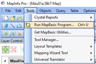- Chọn Tools —> Run MapBasic Program… hoặc nhấn Ctrl + U