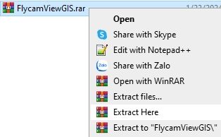 - Click chuột phải vào tập tin FlycamViewGIS.rar, chọn Extract Here (với máy đã cài đặt WinRAR)