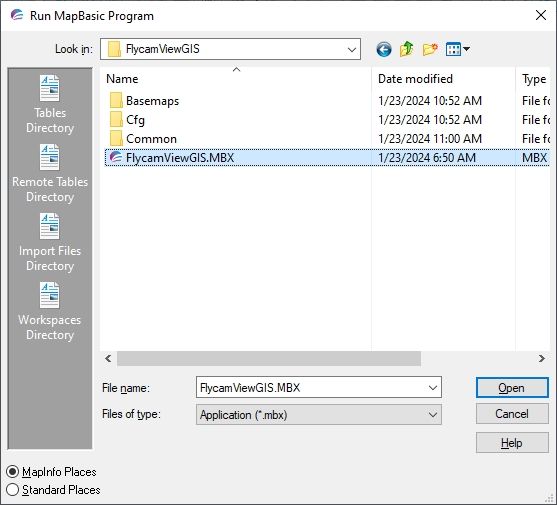 3. CHẠY TOOL Flycam View GIS: Chạy FlycamViewGIS.MBX với Mapinfo v15 x86
