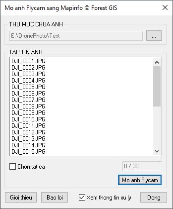 Chọn thư mục chứa ảnh, sau đó chọn lựa các tùy chọn và click vào Mo anh Flycam như hình dưới để xem ảnh Flycam trên bản đồ: