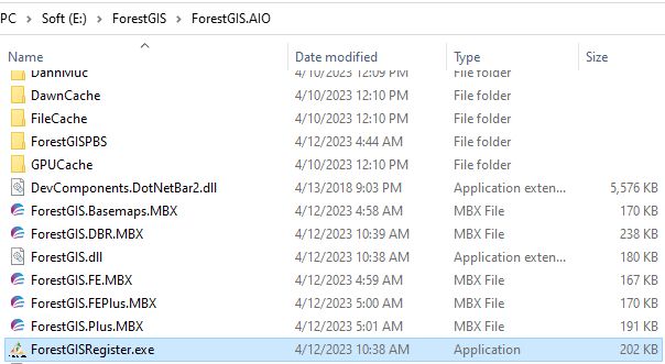 - Chạy trực tiếp từ Windows: Chạy tập tin ForestGISRegister.exe trong thư mục chứa Forest GIS:
