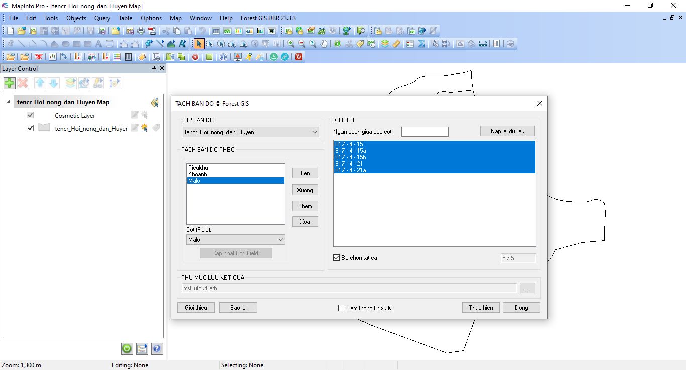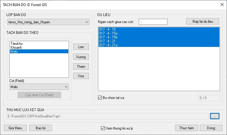 Trang chủ Mapinfo Forest GIS: Tách 1 bản đồ thành nhiều bản đồ Mapinfo Forest GIS: Tách 1 bản đồ thành nhiều bản đồ 118 Chia sẻ FacebookTwitterPinterestWhatsAppTelegramViber Xem thêm: Forest GIS: Tải về – Chạy – Thoát Forest GIS: Nhập nhiều bản đồ thành 1 bản đồ Chọn như hình: Hoặc: Nhập các thông tin, tùy chọn,… sau đó click chuột vào Thuc hien: BÀI VIẾT LIÊN QUANXEM THÊM Forest GIS AIO: Hướng dẫn sử dụng Forest GIS PBS: Ảnh vệ tinh chất lượng cao cho FRMS/QGIS và Mapinfo Flycam View GIS: Hướng dẫn sử dụng Forest GIS DBR: Hướng dẫn sử dụng Forest GIS Plus: Hướng dẫn sử dụng Bình luận bằng Facebook CommentsLeave a Comment