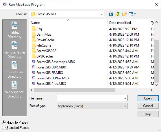 - Chọn thư mục đã giải nén ở bước 2, chọn ForestGIS.FE.MBX hoặc ForestGIS.FEPlus.MBXđể chạy —> Open: